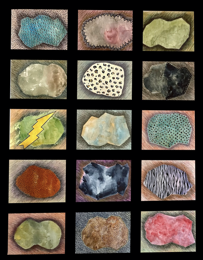 Hemos creado una serie de láminas pintadas a mano con originales minerales rockeros.