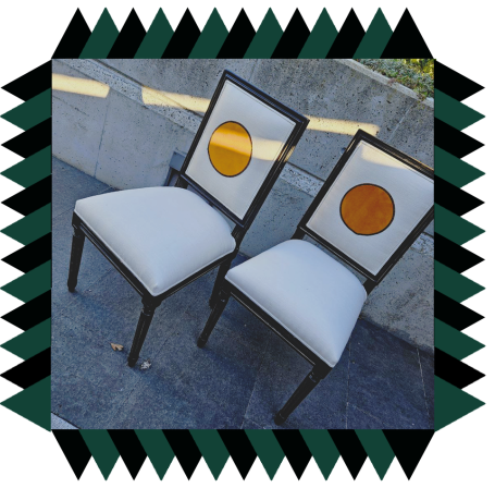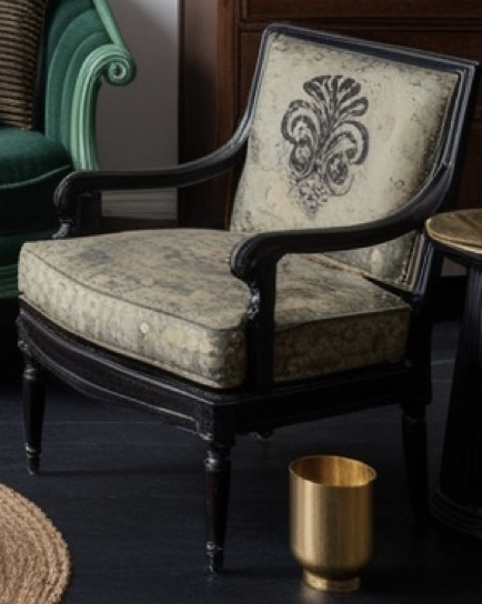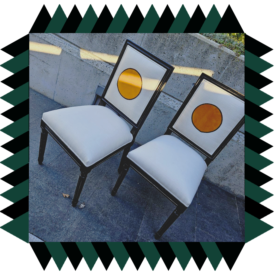 Muebles retapizados con telas escogidas expresamente para cada uno, con tejidos naturales; a veces pintadas a mano en nuestro taller; otras con motivos ornamentales cosidos, pero siempre inventando detalles únicos que los hacen diferentes.