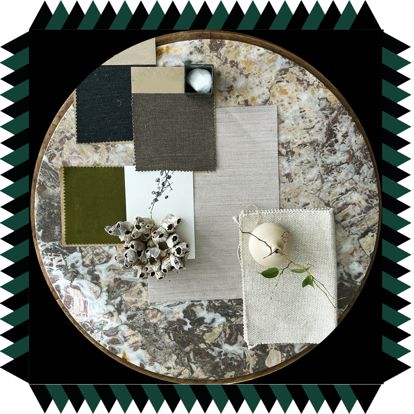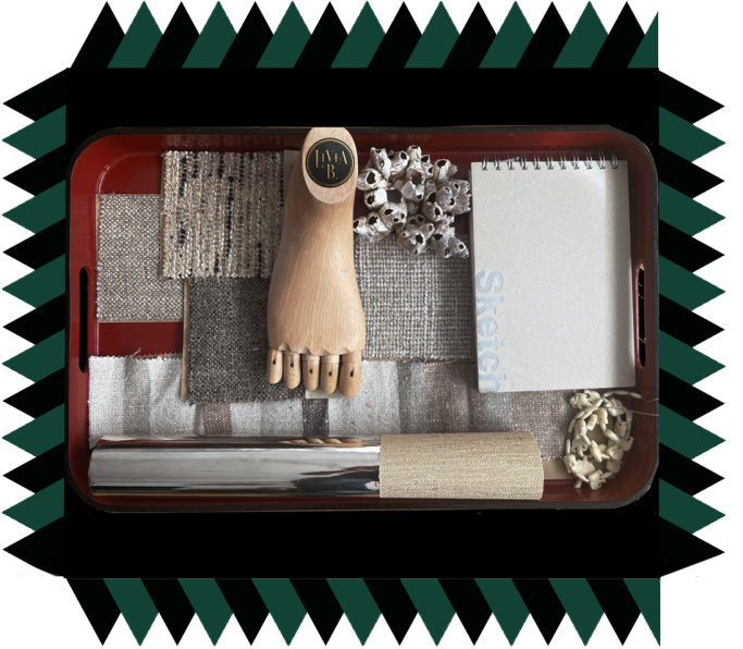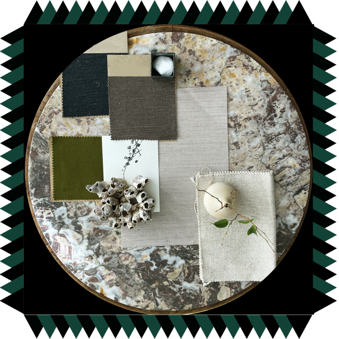 Para nuestros proyectos elaboramos siempre un pequeño boceto de coloridos, texturas, collages, objetos, músicas y aromas que nos inspiran.
